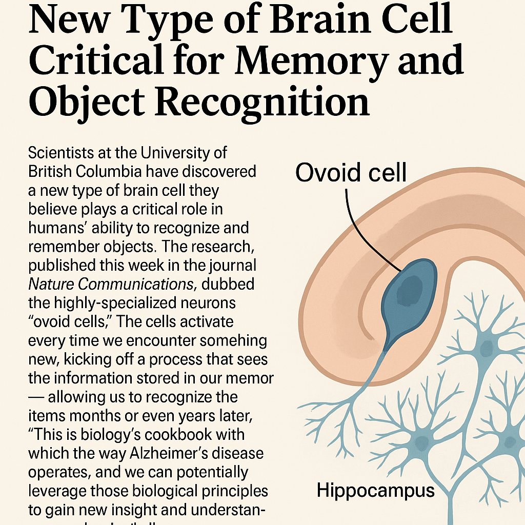 Scientists at the University of British Columbia (UBC) have made a groundbreaking discovery of a new type of brain cell that plays a key role in humans’ ability to recognize and remember objects. The findings, published this week in Nature Communications, could offer new insights into the mechanisms of memory and diseases like Alzheimer’s.